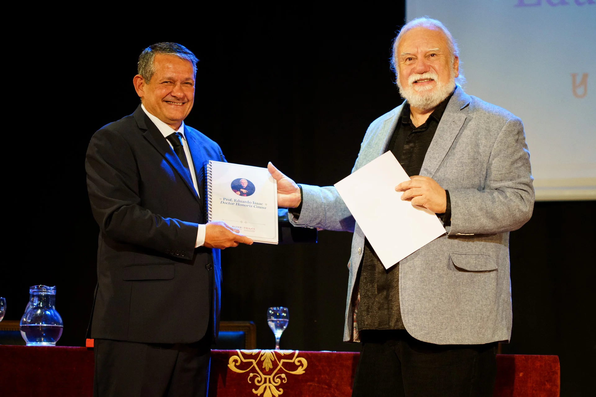 La ceremonia concluyó con un concierto del guitarrista de reconocimiento mundial. La distinción fue propuesta por la FHAyCS. «Nunca tuve dos alumnos parecidos. Nunca pretendí que tocaran como yo», definió Isaac su rol docente.